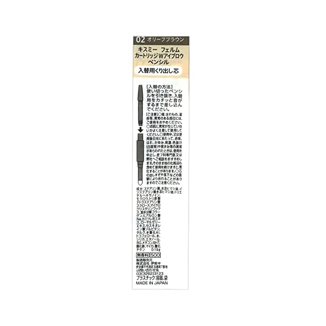 商品名:Kiss Me FERME(キスミーフェルム) カートリッジWアイブロウペンシル(入替用) 02 オリーブブラウン カートリッジ式アイブロウ 入替式 ペンシル