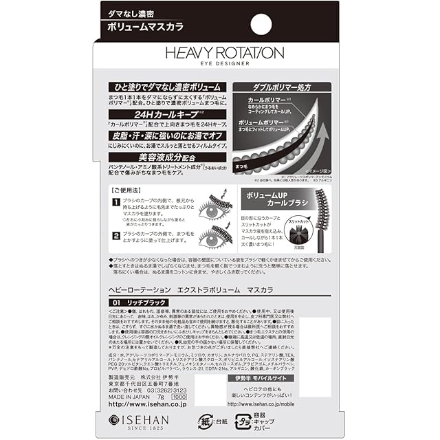 商品名:ヘビーローテーション エクストラボリュームマスカラ 01 リッチブラック 7g 濃密ボリューム ダマになりにくい フィルムマスカラ お湯オフ