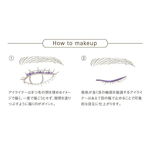 アイラインを描いた後に、後ろに付いているチップでまつ毛の間を埋めるようにぼかせば、ぱっちりと際立つナチュラルな目元が完成します。汗や涙、皮脂にも強く、美しい仕上がりを長時間キープ。目元ケア成分で目元の負担も軽減します。
