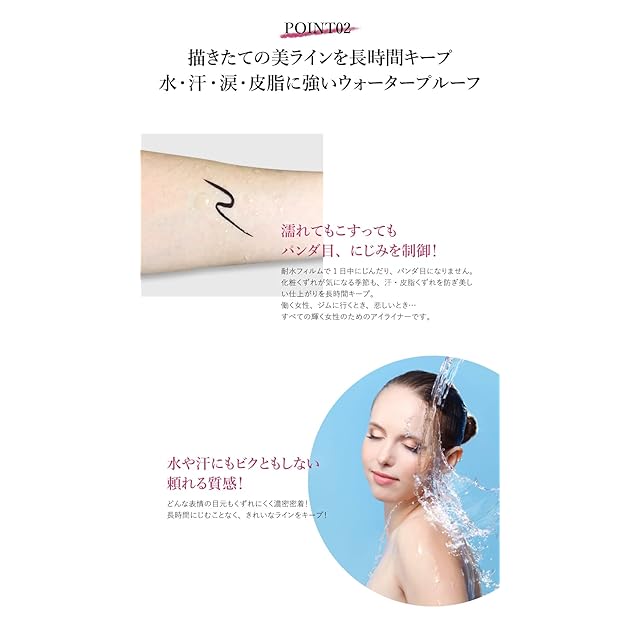 DE リキッドアイライナー ダークブラウン/ウォータープルーフ 長時間キープ お湯オフ 極細毛 初心者 美容成分配合 まつ毛ケア
