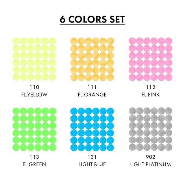 【カラー】ハイライトカラー6色(蛍光イエロー、蛍光オレンジ、蛍光ピンク、蛍光グリーン、ライトグリーン、ライトプラチナ)