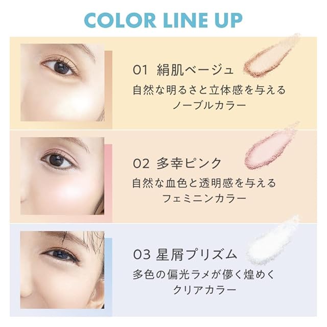 自然な明るさと立体感を与えるノーブルカラー。自然な明るさを与えるベージュカラーが肌本来のツヤのように輝き、透けるような立体感を与えます。