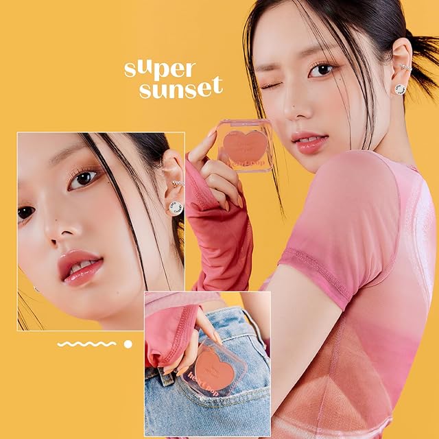 ETUDE [エチュード公式] ハートポップブラッシャー スーパーサンセット(WARM/春) / チーク オレンジ パール入り ナチュラル ハイライト 光沢感 コンパクト 3.3g