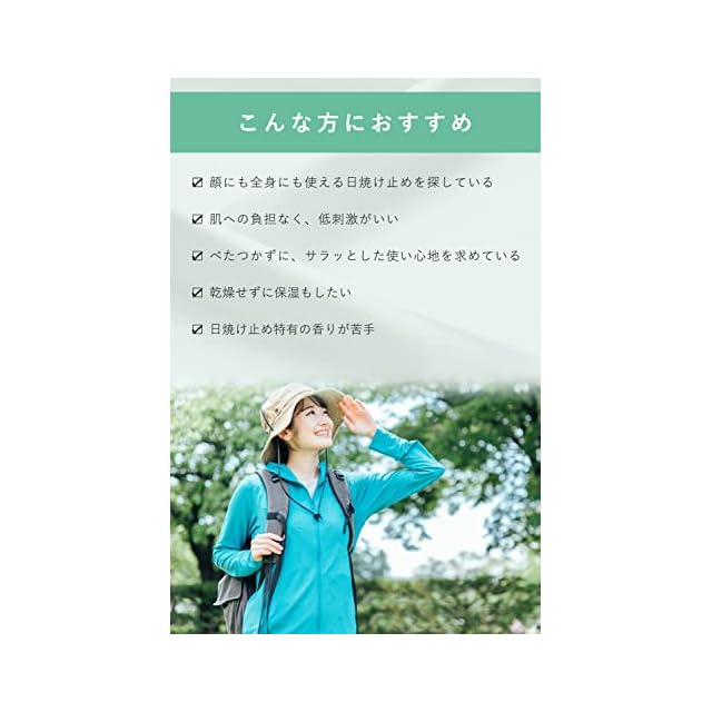 紫外線吸収剤不使用 。素肌感覚のストレスフリーな 全身用 日焼け止め 。