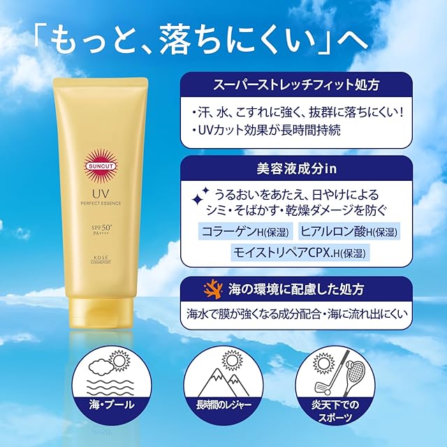 Suncut サンカット KOSE パーフェクト UV エッセンス SPF50+ PA++++ 120g 大容量 日焼け止め おまけ付き