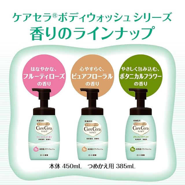 商品名:ケアセラ(CareCera) 泡の高保湿ボディウォッシュ つめかえ用 2個パック+おまけ【1】ピュアフローラル 385ミリリットル (x 2)