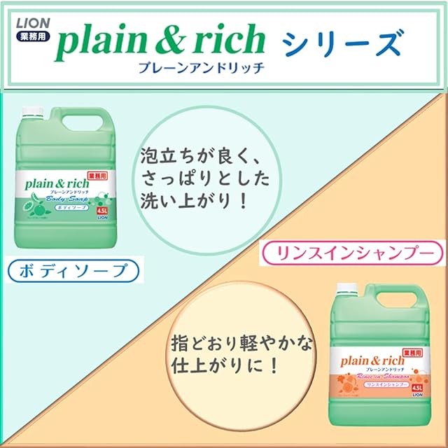 商品名:【業務用 大容量】 プレーン&リッチ ボディソープ 4.5L 詰め替え ライオンハイジーン 介護 宿泊