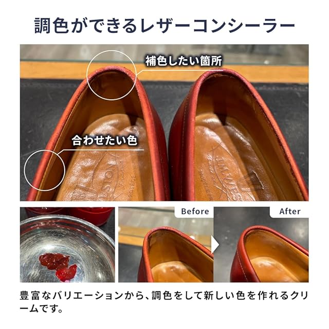 [M.モゥブレィ] キズ補修・補色用クリーム スムースレザー 皮革製品 革靴 革小物 調色可 セルフケア レザーケア 傷隠し キズ コバ お財布 バッグの角 15ml レザーコンシーラー 塗装 色落ちしにくい ネイビー