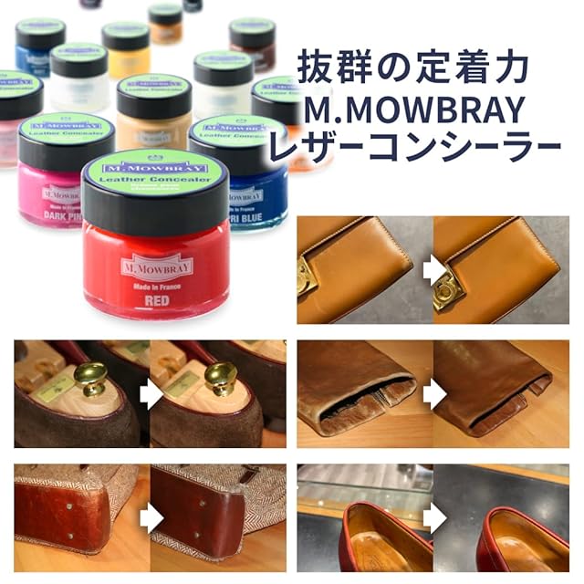 [M.モゥブレィ] キズ補修・補色用クリーム スムースレザー 皮革製品 革靴 革小物 調色可 セルフケア レザーケア 傷隠し キズ コバ お財布 バッグの角 15ml レザーコンシーラー 塗装 色落ちしにくい ホワイト