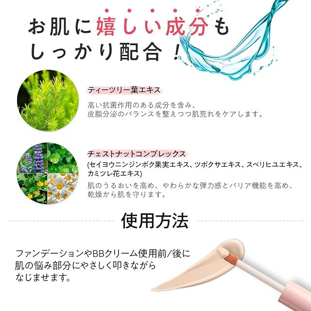 ◆くずれ防止の無敵コンシーラーです。肌になじむように軽く密着し、表面にコーティング膜を形成して長時間のマスクの着用にも、くずれを最小限に抑えます