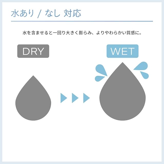 水あり/なし対応:水を含ませると一回り大きく膨らみ、より柔らかい質感に