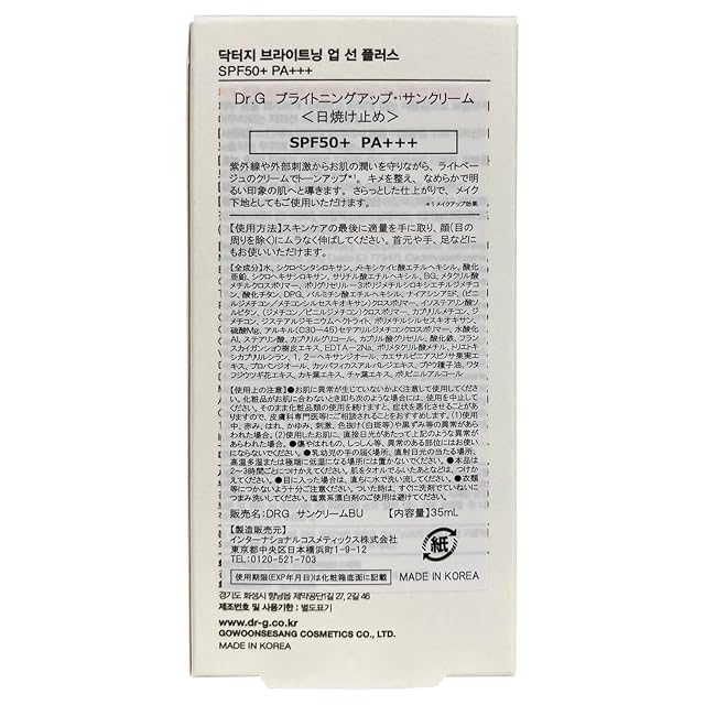商品名:Dr.G(ドクタージー) SPF50+ ブライトニングアップサンクリーム (35mL)