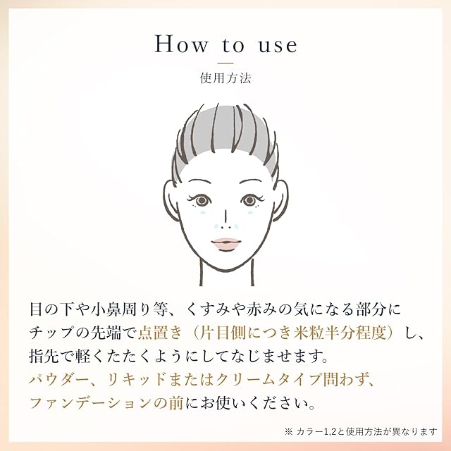 【光とツヤで肌悩みをカバー】くすみや赤みなどの気になる肌悩みを、パールの光とツヤでナチュラルにカバー。厚塗りにならない自然な仕上がりで、肌印象がアップする、チップタイプのコンシーラーです。