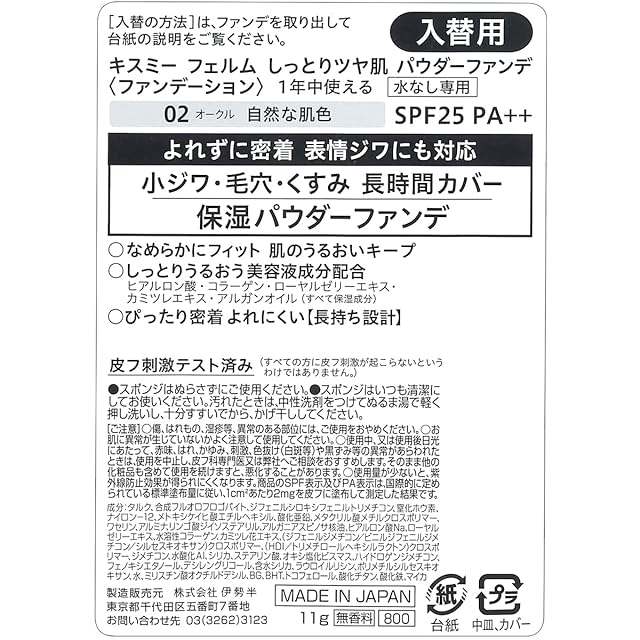 商品名:Kiss Me FERME(キスミーフェルム) しっとりツヤ肌パウダーファンデ 入替用 02 自然な肌色 11g 表情ジワにも対応 保湿タイプ SPF25 PA++