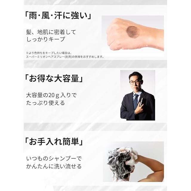 商品名:SMHメンズヘアファンデーション 20g No.2 ダークブラウン 薄毛 抜け毛 円形脱毛症 白髪 対策 増毛パウダー 髪 頭皮 分け目 生え際用 薄毛隠し 白髪隠し
