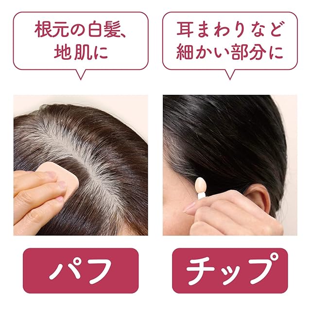 白髪を隠したり地肌を自然にぼかすのに便利な、ファンデーションタイプの白髪かくし。携帯に便利なコンパクトタイプ。