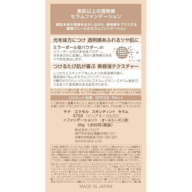 excel(エクセル)スキンティントセラムST03(ピュアオークル20)ファンデーション リキッドファンデーション