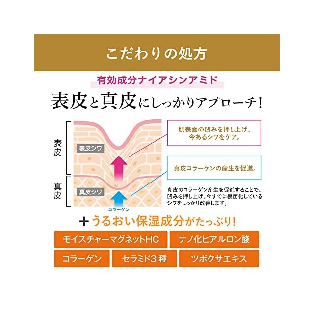 シワ改善+高保湿を実現! 美容液成分を贅沢配合し伸びがよくしっとり続くBBクリーム。うるツヤ肌仕上げ。シワ改善&美白※Wの効果が認められた有効成分ナイアシンアミド配合。【医薬部外品】※メラニンの生成を抑え、シミ・ソバカスを防ぐ