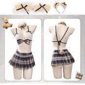 ❤セット内容:ヘアバンド+ネックリング+ブラジャー+ブレスレット*2+スカート+Tバック。(ストッキングは含まれていません)