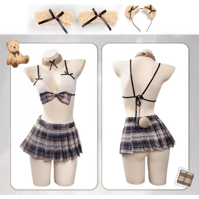 [LIKENNY] セーラー服 クマさん コスプレ セクシー 7点セット JK ギャル 可愛い 激萌え 制服 女子高生 ミニスカ 誘惑 熊耳 尻尾 仮装 パーティー ハロウィン クリスマス プレゼント 人気 写真 撮影 茶色 おしゃれ