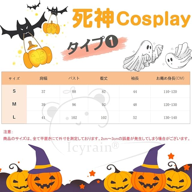 商品名:[Icyrain] 死神 コスプレ 蛍光効果 子供 ハロウィン 仮装 骸骨 髑髏 怖い お化け 死神コス なりきり コスチューム ホラー風 キッズ ハロウィン 男女兼用 学園祭 演出服 文化祭 部活 パーティー用 (L, タイプ1)