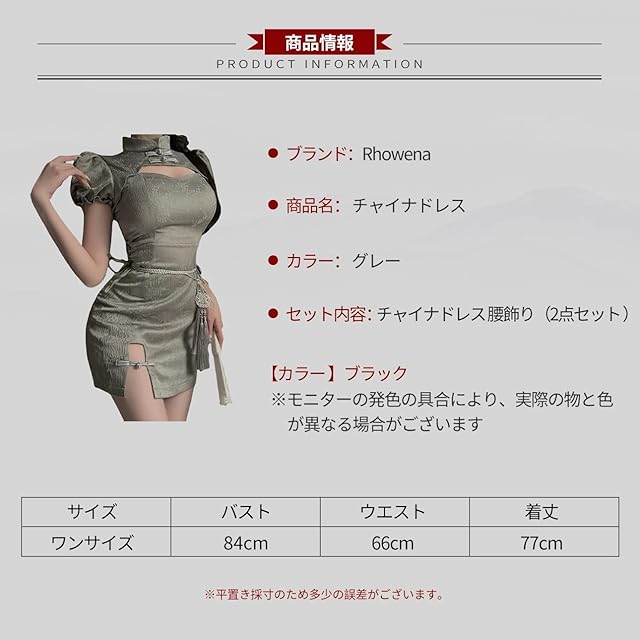 商品名:[Rhowena] チャイナドレス コスプレ セクシー チャイナ服 ワンピース モダン チャイナ風 コスチューム ドレス 可愛い 半袖 灰色 エレガント夏秋 仮装 Cosplay 腰飾り 2点セット