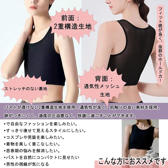 【バストを自然に小さく見せる】バストを綺麗に収納し美シルエットを実現。胸を潰し、目立たなくします。