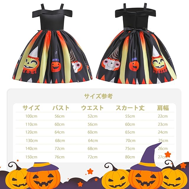 商品名:[DERAYEE] ハロウィン 衣装 子供ドレス カボチャ 魔女 仮装 コスプレ 女の子 可愛い バッグ付き コスチューム ワンピース パーティードレス お化け 演出服 (Sサイズ, カボチャ柄)