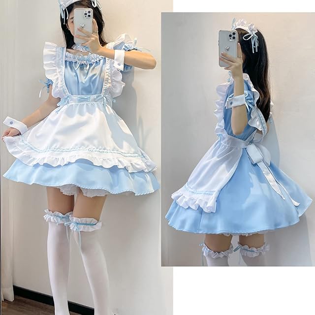 商品名:[FULINE] メイド服 レディース コスプレ衣装 lolita メイド服 コスチューム 仮装 学園祭 メイドカフェー セクシー 仮装 ブルー 5XL