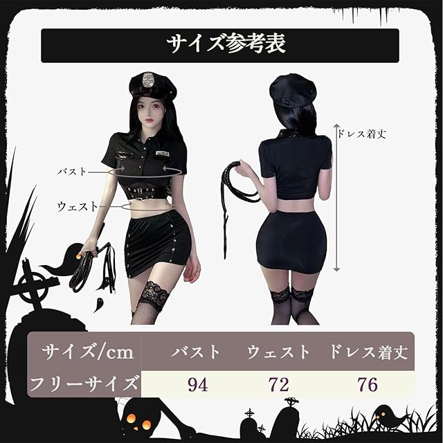 黒いセット:ポリス帽子+上着+ミニスカート+可愛いミニパンツ+黒いストキング5点セット。ハロウィーンパーティーをコスプレ変装できます。リアルで見た目もクオリティも抜群で、ドレス コスプレ衣装は半袖・ショート丈のドレスでかわいいデザインの中にもセクシーな要素が入っており、着心地も抜群。コスプレ、仮装パーティーや普段着の場合でも似合いますよ。