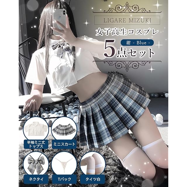 [LIGARE MIZUKI] コスプレ セクシー 女子高生 5点フルセット【 半袖ミニ丈トップス/ミニスカート/Tバック/ネクタイ/タイツ 白 】誘惑 高校生 セーラー服 制服 JK ミニスカ 学校 学生 服 大人用 可愛い プレゼント ギャル レディース かわいい 仮装 コスチューム ハロウィン クリスマス ルーズソックス 女装 人気 エロ 萌え 写真 おしゃれ 定番 本格 撮影 衣装 学生 学園祭 文化祭