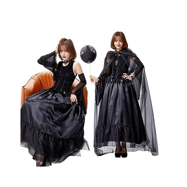 商品名:ハロウィン コスプレ 魔女 吸血鬼 衣装 大人 レディース 大きいサイズ セクシー 黒 ロング ワンピース マント 貴族 バンパイアドレス イベント 仮装パーティー 文化祭 (XL)