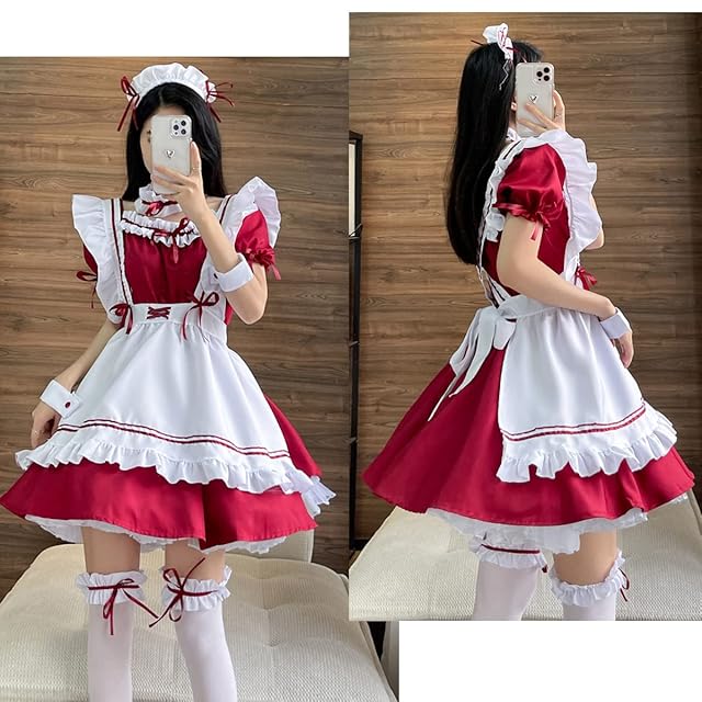 [FULINE] メイド服 レディース コスプレ衣装 lolita メイド服 コスチューム 仮装 学園祭 メイドカフェー セクシー 仮装 レッド 5XL