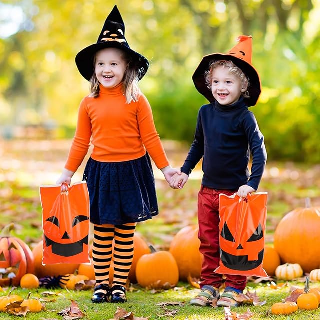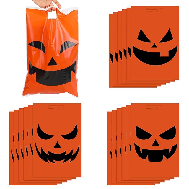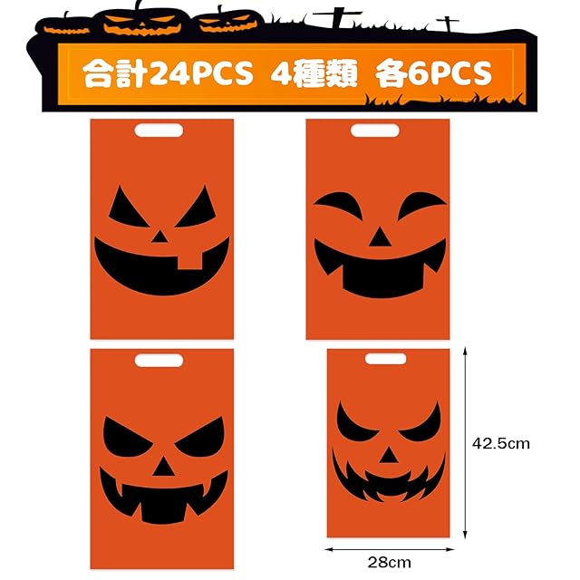 CINECE ハロウィン ラッピング袋 手提げ 24PCS 大きい レジ袋 43×28CM プレゼント お菓子 キャンディ プラスチック かぼちゃ オレンジ