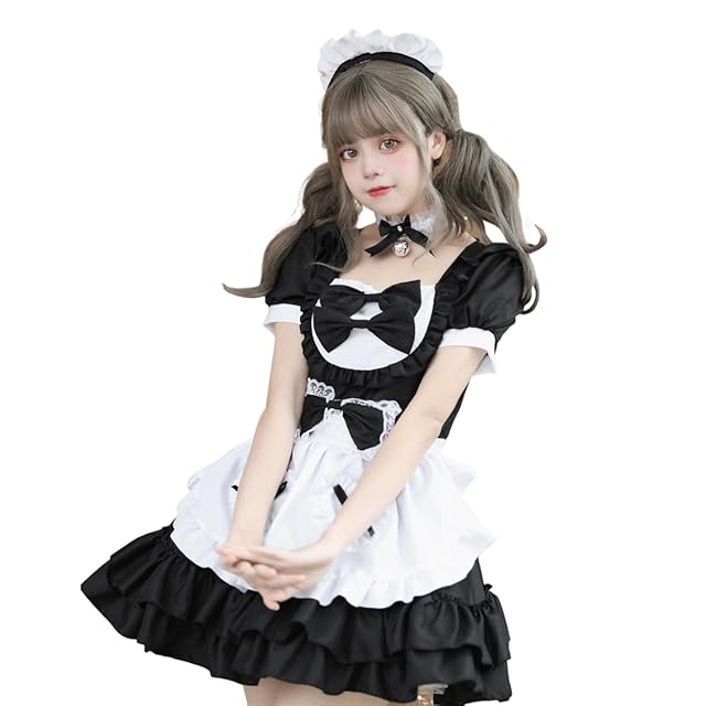 [AOTYP] メイド服 コスプレ コンカフェ メイド 可愛いメイド ショート丈 メイドコスチューム ハロウィン仮装 レディース ハロウィンメイド イベント パーティー 大人 ハロウィン 学園祭 撮影 オタクダンス ブラック M
