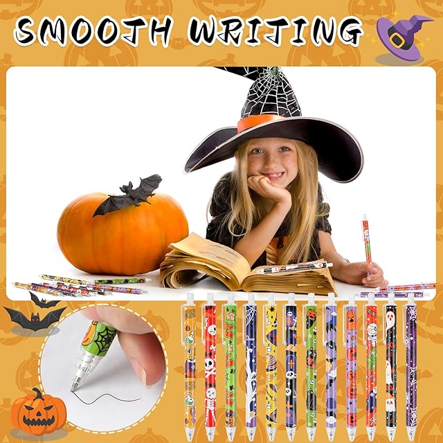 FINGOOO ハロウィン ペン 景品 24本入・12種 ボールペン おしゃれ 可愛い 文房具 学生 ギフト プレゼント 黑 (ノック式 24本)