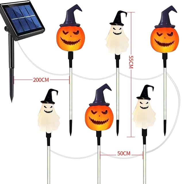 YZYOE ソーラーハロウィン装飾ライト6セット、屋外庭園の雰囲気幽霊鬼カボチャライト
