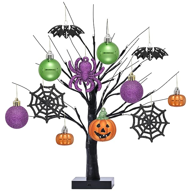Valery Madelyn ハロウィン飾り ハロウィン ツリー 24個LEDライト付き 12個オーナメント付き 卓上 装飾 玄関 飾り ライト かぼちゃ クモの巣 コウモリ 高さ40cm
