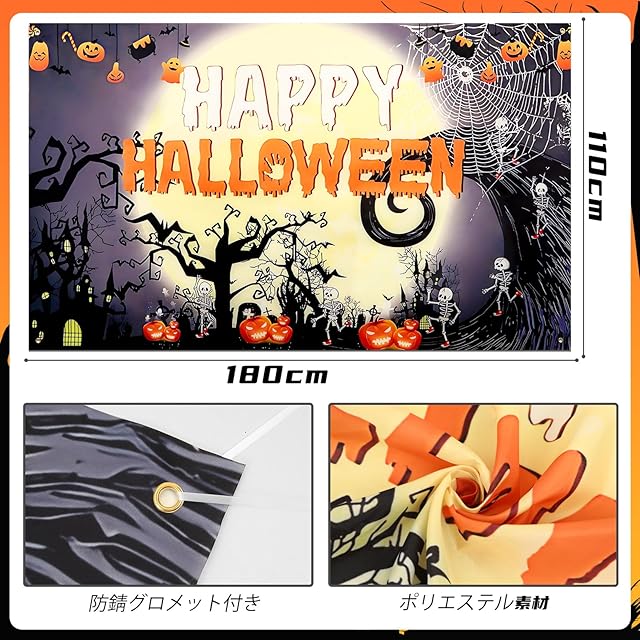 材質:こちらのハロウィン タペストリーはポリエステルで作られており、耐摩耗性と耐候性があり、繰り返し使用できます。布製品なので、水洗いが可能で、お手入れも簡単です。使用後はコンパクトに折りたたんで収納できます