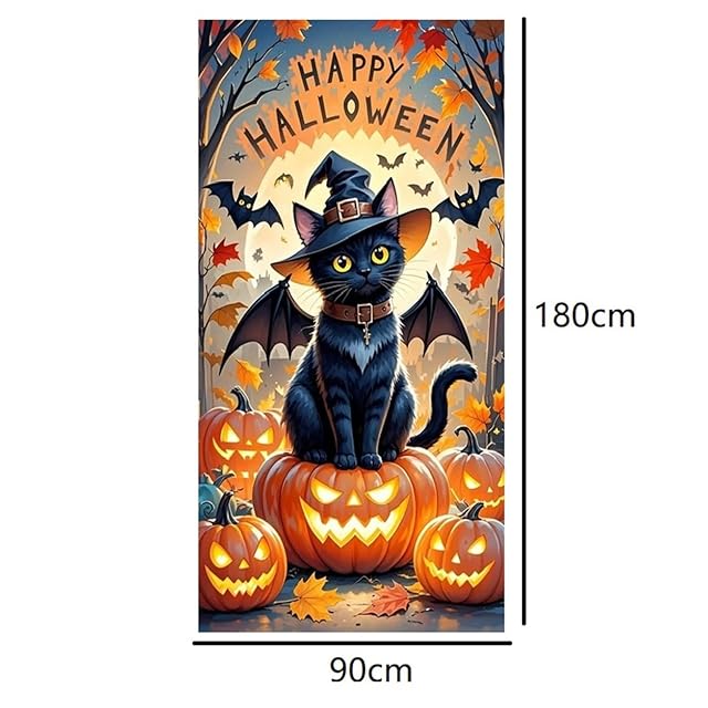 himsyuden ハロウィン飾り ドアカバー 吊り下げ バナー 黒猫 かぼちゃ コウモリ タペストリー HAPPY HALLOWWEEN 壁バナー 玄関飾り ドアバナー パーティー ハロウィンデコレーション 180*90cm