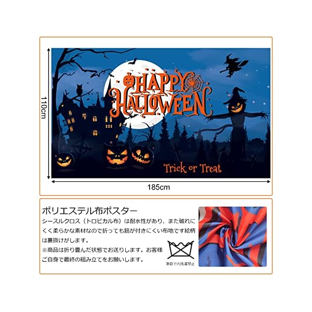 【セット内容】ハロウィンタペストリー×1枚(サイズ:縦185cm×横110m 、素材:ポリエステル)