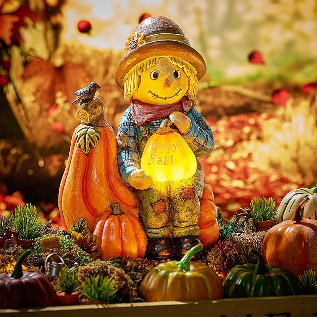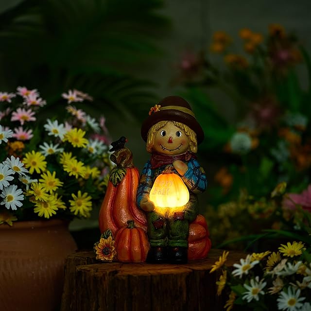 Valery Madelyn 秋の飾り 季節の飾り かわいい かかし ソーラーライト付き ハロウィン 飾り 屋外 ハロウィン 置物 カボチャ 屋外用彫像 アウトドア 庭 飾り 置物 オブジェ 樹脂製 防水 16cm