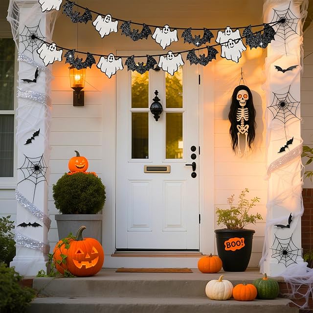 セット内容:パッケージにはHAPPY HALLOWEEN ガーランド×1、コウモリ ガーランド×1、コウモリステッカー×12枚が入っています。シンプルなハロウィン 飾りで、自宅の様々な場所で使用でき、祭りの装飾ニーズに対応しています
