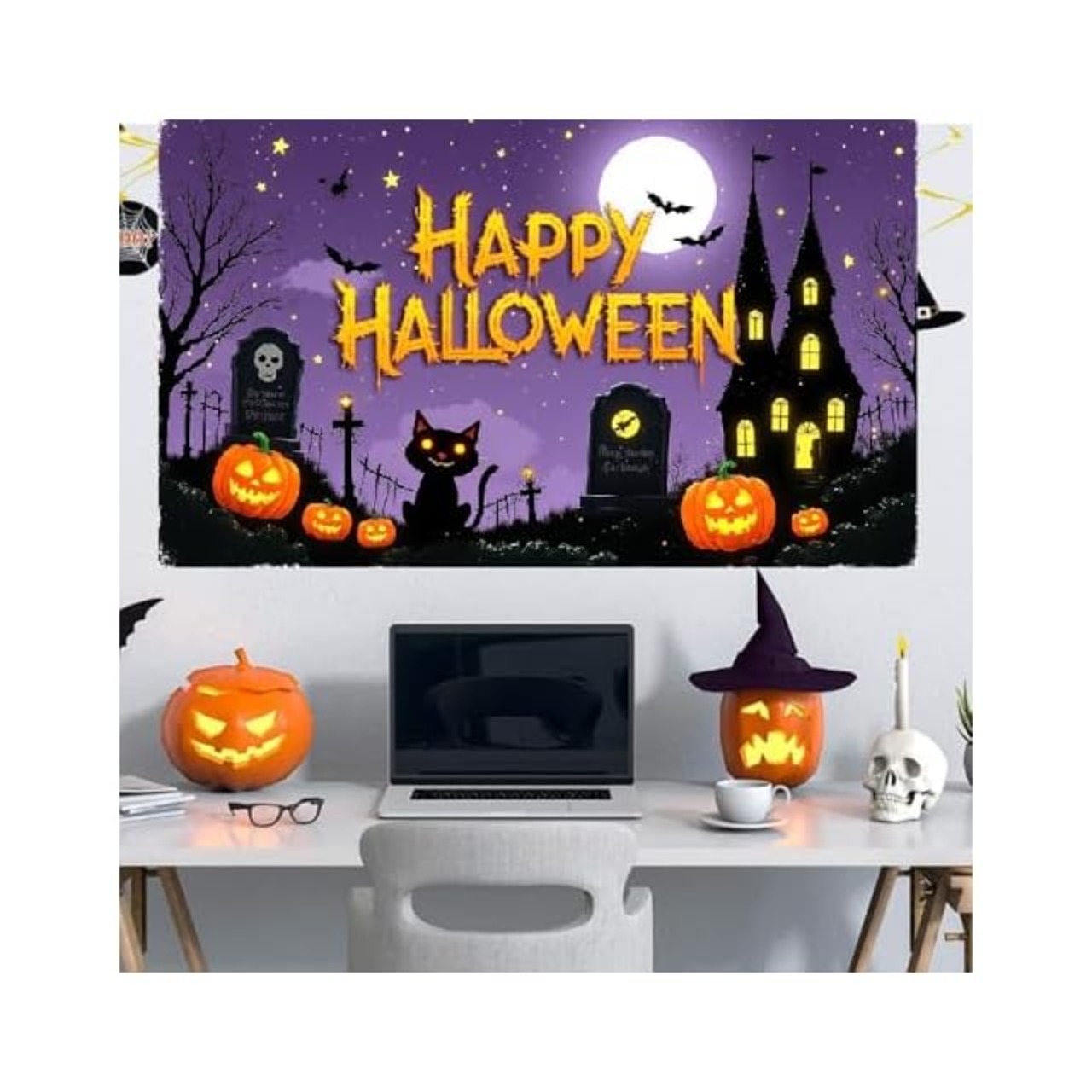 「ハロウィンの雰囲気満点」この背景布は、多種類の異なるハロウィンテーマ(黑猫、カボチャ、廃城など)がプリントされています。それぞれのデザインは細部までこだわっており、壁やドアに飾れば一気にハロウィン気分を盛り上げます。他のハロウィン装飾と組み合わせれば、さらに豪華な演出ができます。