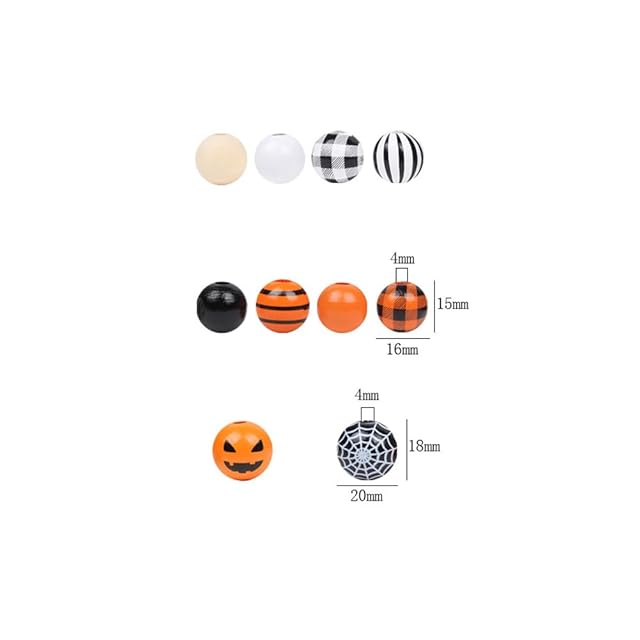 各ビーズには穴が開いており、付属の麻紐を使ってブレスレットやネックレスなどのジュエリーを簡単に作ることができます。ビーズの直径約は2cm/1.6cm、穴径は約0.4cmで扱いやすく、ハロウィンの雰囲気を楽しめるDIYクラフト素材として重宝します。