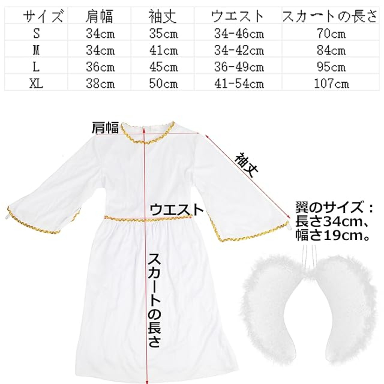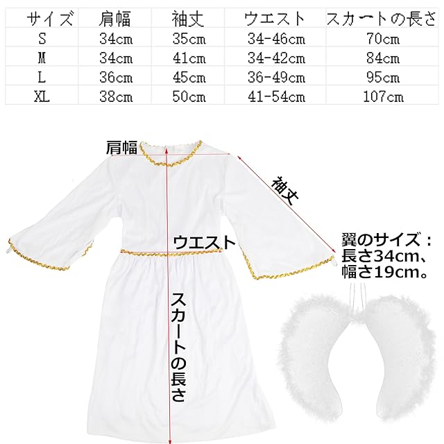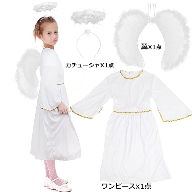 商品名:[DERAYEE] コスチューム 仮装セット コスプレ 子供 天使の輪 天使の翼 小物 可愛い お化け屋敷 パーテイー ハロウィン クリスマス 写真撮影 贈り物 男女共用 (XL)