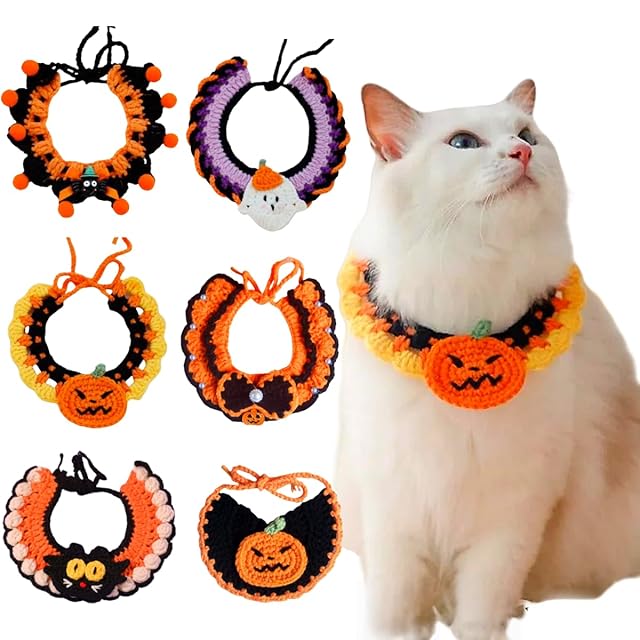 【ハロウィンの定番!ペット用コスチューム】幽霊・かぼちゃ・クモ・黒猫など6種類のデザインから選べる犬猫用可愛いバンダナ。オレンジ&ブラックのハロウィンカラーが愛犬・愛猫を可愛く変身させ、イベントや記念撮影にぴったり。