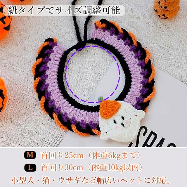 【サイズ調整可能&フィット感抜群】結び紐でサイズ調整ができるため、首回り25cm(体重6kgまで)のMサイズと、首回り30cm(体重10kg以内)のLサイズを用意。小型犬・猫・ウサギなど幅広いペットに対応。