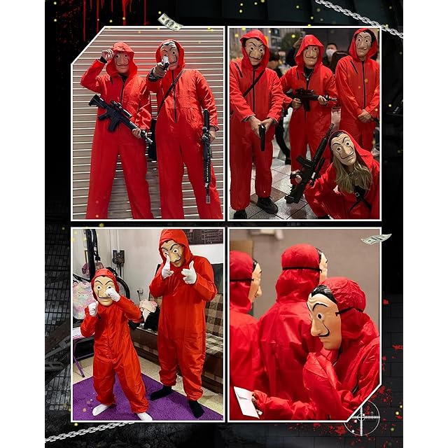【赤いジャンプスーツ&ダリマスク!劇中再現】 人気沸騰中のドラマのコスプレ衣装の完全再現!赤いジャンプスーツと象徴的なダリマスク(細かいところまでリアルな雰囲気のマスク)のセットで、届いたその日から劇中のキャラに変身できます。