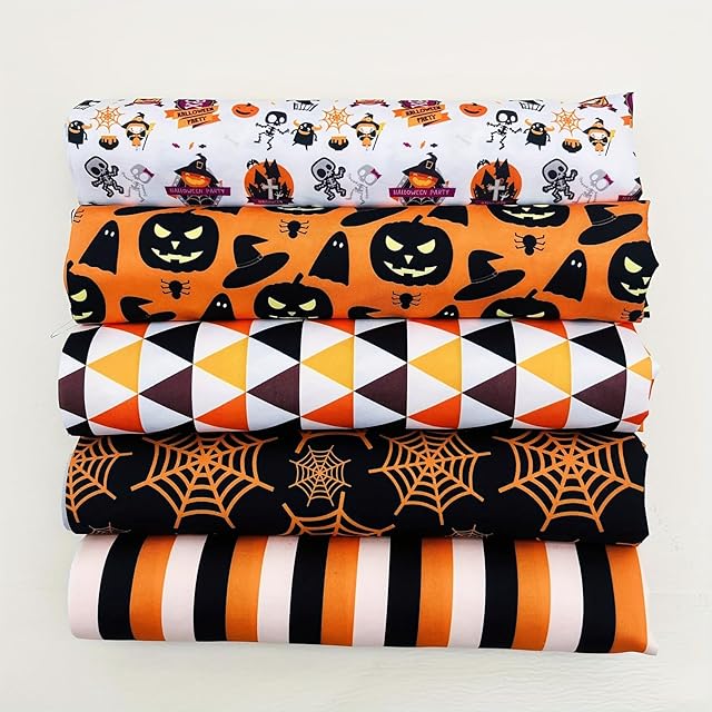DIFEIUKI ハロウィン パッチワーク布 カットクロス 5枚セット かぼちゃ 蜘蛛の巣 スカル柄 パッチワーク布 オレンジ ブラック はぎれ布 DIY 手芸用 手作り ハンドメイド 家庭用 ハロウィン装飾 50*50cm